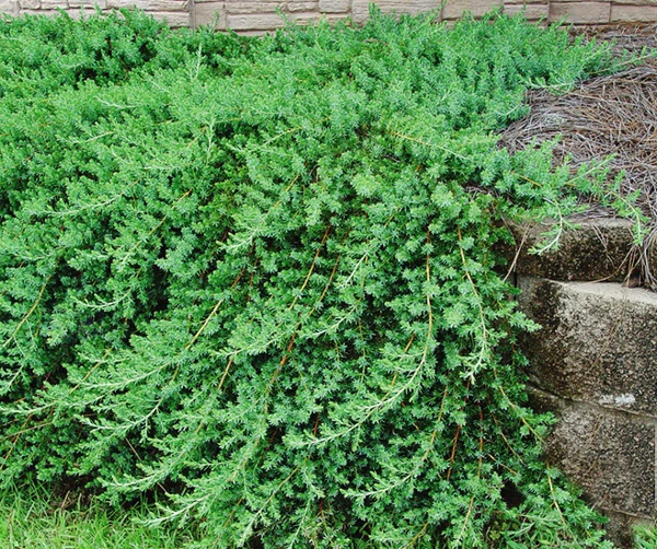 The Blue Pacific Shore Juniper is one of the very best of these low-growing junipers. First, it has vibrant blue-green foliage that looks great every day of the year. Secondly, it grows no more than 12 inches tall, but it covers an area at least 6 feet across, so one plant goes a long way. It will flow across the ground, on flat or sloping areas, creating a dense covering that is weed-resistant and attractive all year round. Several plants will turn a dry, weedy spot into a low-maintenance carpet of blue. Planted along the front of a larger bed it makes the perfect transition to a walkway or drive. With other evergreens – both upright and spreading, you can make a very attractive garden feature out of an expanse of dry gravel.