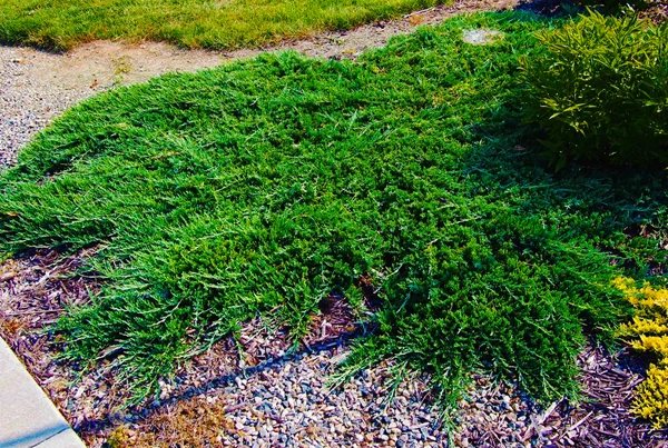 Full sun is the best location for the Broadmoor Juniper, but it will tolerate a couple of hours of shade each day. It should always be planted in well-drained soil, which is why slopes and banks are such good locations. For mass planting, allow 4 feet between plants, to create a solid cover in a few years. It will grow in any type of soil, including limestone soils, rocky gravels, sand, and heavy clays. It will not grow in wet soil, although it is less susceptible than most other varieties to the juniper blight (Phomopsis) that attacks junipers growing in wet ground. This plant is normally not bothered by pests or diseases, and deer and rabbits usually leave it alone. It grows in urban gardens, and this is one of the easiest plants for your garden, requiring no care to always look great. Allow plenty of room for it to spread, so that trimming is not needed. If you do need to trim it, cut back to a shoot on top of the main stem, so that the cut is hidden, allowing new growth to quickly develop. Do not cut back into bare branches, as these can never produce new shoots.