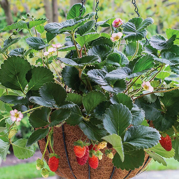Nothing beats eating fresh fruit from your garden, but not everyone has space for fruit trees, or even for fruit bushes. If that sounds like you – or if you just adore fruit and want more – then strawberries are the way to go. These are compact plants that need little room, and they can be grown right among your flowering plants. For beauty and delicious fruit, we recommend the Rosy Belle™ Strawberry. This ever-fruiting variety carries berries from June to September, so when you need some fruit – there it is. With its trailing clusters of fruits it is perfect for pots and window boxes, and perfect for hanging baskets. There is always room for it, even in the smallest garden, and it’s not just the fragrant red fruit you grow it for, because the pink flowers are beautiful, making this plant worth growing just for flowering beauty.