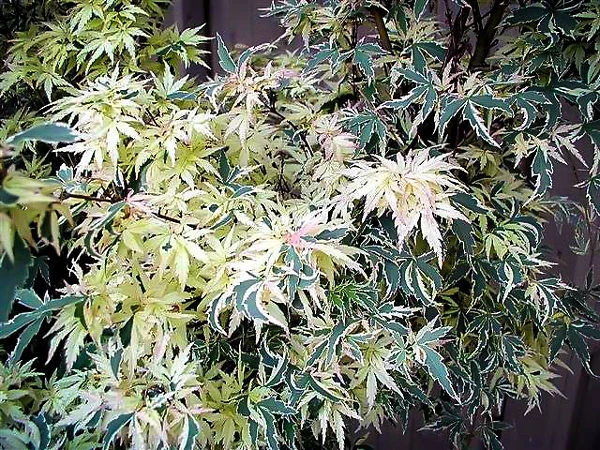The Butterfly Japanese Maple is a small, upright tree with a shrubby form. It will stay small and compact for many years, eventually growing 7 to 12 feet tall, so this is an idea Japanese Maple for a small garden, or for growing in a large pot – a great way to enjoy these enchanting trees. It has a dense, bushy form and it is easily made into a more open, oriental-looking tree with a little thinning of the branches. Just remove a few twigs as the tree develops, and trim back any very long shoots, so that a natural, tree-form is created.