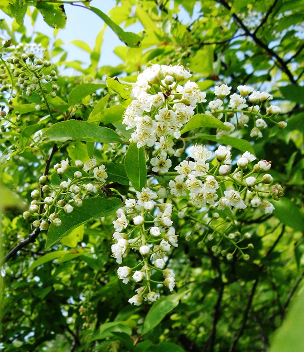 As their name suggests, chokecherries are not very tasty when eaten raw. Most people find them sour and bitter. But made into juices, cordials and preserves they are tasty and appealing, as well as being rich in anthocyanins, compounds that are believed by some people to protect against serious illnesses and generally stimulate the immune system. They are comparable in many ways to the juice of the chokeberry, Aronia, which has become an important healthy crop. If you don’t harvest your chokecherries, they will look attractive on the tree for a few weeks, before becoming a valuable food for local songbirds, attracting them into your garden.