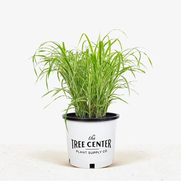 The Cosmopolitan Maiden Grass is a perennial grass that forms, in a single season once it is established, a tall column of swaying stems, with arching leaves, reaching 4 to 5 feet tall and wide, and up to 8 feet when flowering. It is self-supporting, and stand up to strong winds and rain without any trouble. The many stems grow in a dense clump, and the slender leaves arch out and hang down, creating a unique and wonderful garden form. Each leaf is up to one-inch wide, and bright green, with a slender pale-green vein down the center and a broad creamy-white stripe down each edge. The variegated foliage makes this plant bright and sparkling, and very different looking from most other maiden grasses, which normally have very thin, wiry leaves. It sprouts in spring, growing up from a perennial base, and soon reaches its maximum height.