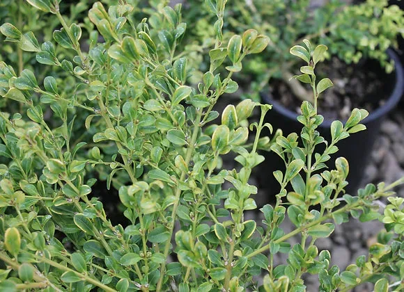 The Curly Locks Boxwood is a small, slow-growing evergreen shrub that will in time reach a height of about 3 feet, with a similar or slightly wider spread, depending on how it is grown. The branches are covered in a light-brown, flaking bark, and the stems twist and turn randomly, creating an attractive effect. The small green leaves are less than an inch long and almost circular. They are leathery in texture, smooth, glossy and an unusually-light yellow-green color. Some of the leaves, like the stems, tend to curl too, adding further to the charm of this great little plant. In colder zones sometimes in winter the leaves can turn a little bronzy, much less so than with other forms but this soon disappears again in spring. In spring you will see inconspicuous small greenish-yellow flowers in clusters along the older stems, but these are of no particular ornamental value.