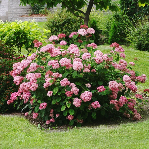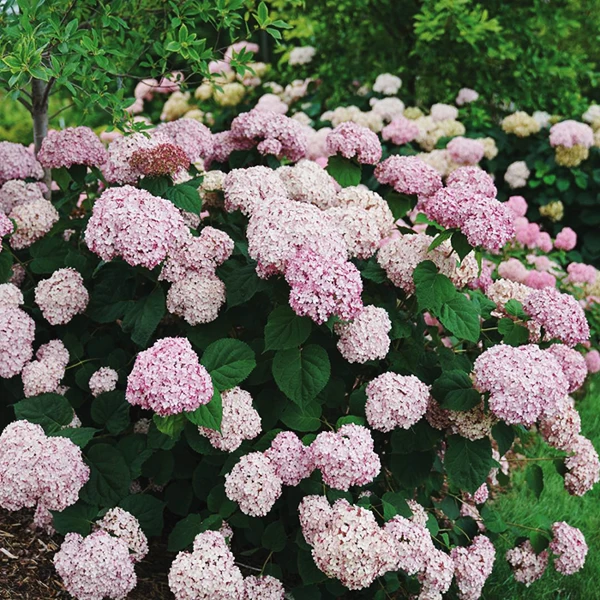 Easy hydrangea growing in colder parts of the country has always been the Annabelle Hydrangea. This plant is hardy in zone 3, and it blooms reliably on new stems. Close in appearance to the classic mophead hydrangea of warmer zones, it is limited to white blossoms. The plant is also floppy, and the stems are not good at holding up the blooms, so while popular and widely planted, it is, to put it politely, ‘less than ideal’. All that changed with the arrival, about 10 years ago, of the Incrediball® Hydrangea, an improved Annabelle with sturdy stems that hold up the heads perfectly, but still only offers us white flowers. Now things have moved to a whole new level, and the first reliable, cold-resistant pink hydrangea has arrived, and wow, what a plant it is. The Incrediball® Blush Hydrangea has huge blooms in gorgeous, rich, pink tones, on a compact bush 4 to 5 feet tall. Once established your bush will produce enormous blooms, far larger than older types, that will give your garden a real color punch and amaze your neighbors. Profusely covered in as many as 100 blooms all June, it even blooms on new stems too, coming back again in late summer and early fall – incredible is right.