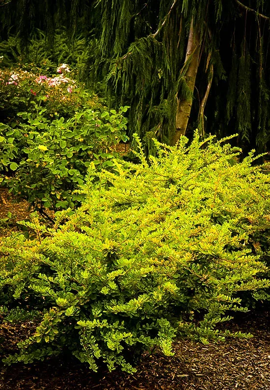 Japanese Barberry (Berberis thunbergii) was first grown in America in 1875. The well-known Arnold Arboretum in Boston brought it from China and Japan where it grows naturally. It quickly became very popular as a hardy garden plant, and in time many varieties with colored leaves were developed by gardeners. At the Tree Center, we offer a wide range, from the purple foliage of ‘Crimson Pygmy’ and the orange-reds of ‘Day Break’, to the stunning pink of ‘Rose Glow’. Placed around your garden, these plants bring lots of vibrant color for no effort at all.