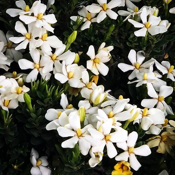 The Little Daisy Gardenia is very adaptable to different light conditions, growing either in full sun or partial shade. Generally, as you move into warmer zones, afternoon shade becomes beneficial and even necessary to prevent scorching and bud-drop. Too much sun can also limit later flowering if you are growing in the hottest zones. Although pretty easy to grow, this plant does need some attention to the soil, doing best in moist, well-drained acidic soils with added lime-free organic materials mixed into the soil and used as mulch. In planters, use soil for acid-loving plants. Dry soils, and alkaline ones, are not tolerated well.