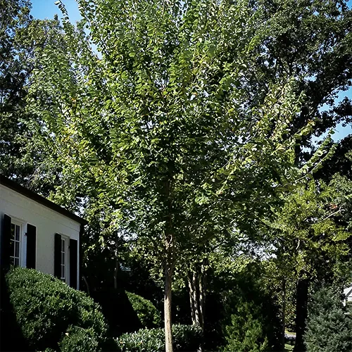 If there is one tree firmly embedded in the hearts of Americans, even those too young to really remember, it is the American elm tree. Once lining the streets of every town, this tree brought a sense of place that no other tree can ever do. It was a tragedy when Dutch Elm Disease marched across the country in the middle of the last century, decimating town streets and killing millions of trees. This majestic tree, with its distinctive tall, arching crown, turned ordinary streets into cathedrals, and it is sorely missed. The good news is that disease-resistant varieties exist, and you can today plant elm trees with a good likelihood that they will mature into grand specimens, and still be here in the next century. There are several varieties on offer, but the best is the Princeton Elm Tree.