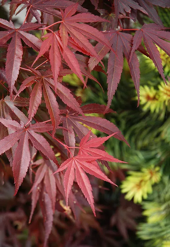 Skeeter’s Broom Japanese Maple makes a perfect accent specimen in a shrub bed, and it can be grown right at the front, where its foliage will be fully appreciated. It looks wonderful on a smaller lawn, alone or planted in groups. Use it in containers and planters in warmer zones, where it is easy to maintain a good water supply to the roots. This colorful plant is a great way to brighten boring green beds, and its fall color will look perfect on the edges of a wooded area.