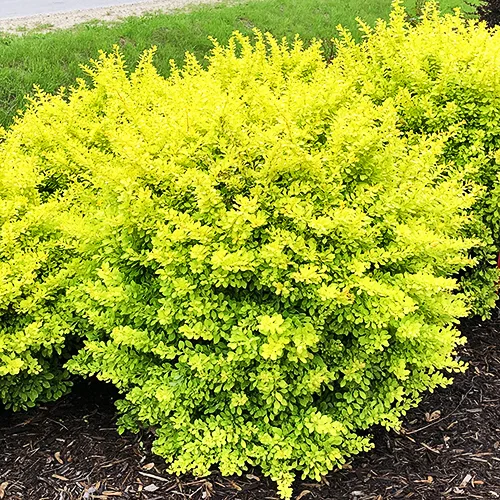 Full sun is best if you want to enjoy the true sunshine yellows of this plant. Too much shade will make it greener – still attractive of course – and make it less bushy. Other yellow-leaf barberry bushes are often plagued by burning and scorching of the leaves, making them unattractive all summer. The Sunjoy Citrus Barberry was tested for 5 years for its resistance to scorching, and it simply doesn’t do it, even in full sun and dry soil.