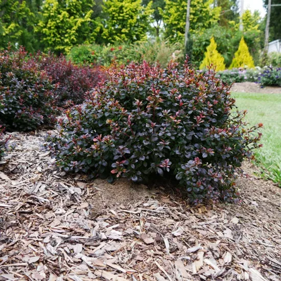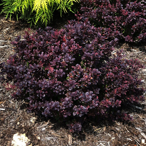 The Sunjoy Todo Barberry is a semi-evergreen shrub less than 3 feet tall. It has a dense, rounded form that is always neat, and it needs no trimming to stay that way. The many branches grow from the base of the plant, keeping it always dense, and the tiny thorns at the base of the leaves make this plant ideal for an impenetrable barrier. The smooth rounded leaves are just ½ to ¾ of an inch long, and perfectly in scale with the small size of this bush. They have a smooth, glossy surface and they are unfailingly always a bright, rich burgundy-purple you will love, without ever fading or greening. Most barberry bushes are deciduous, losing their leaves in fall, but this one is unique, because it keeps most of its leaves, especially the younger ones at the ends of the stems, all through winter. This means that great color is yours throughout the year, not just seasonally.