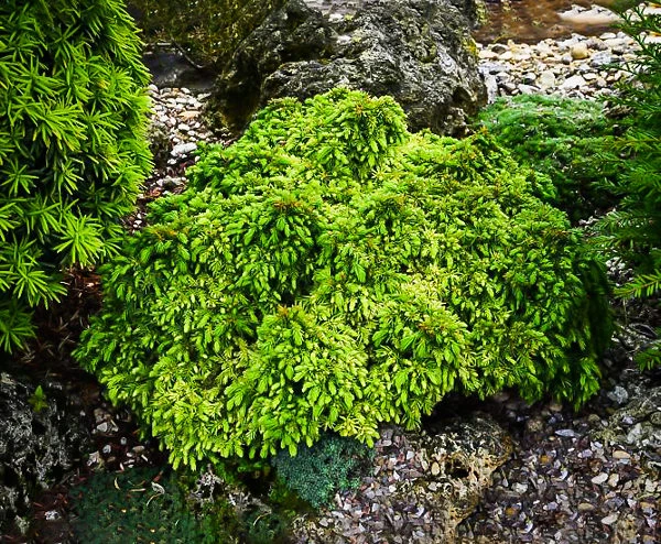 This is not a plant to put out in the rough and tumble of an ordinary garden, but one to grow in a sheltered pocket of a rock garden, in a planter or trough dedicated to tiny shrubs and plants, in a special container to be admired, or perhaps grown in a dish along side bonsai plants for an Asian garden. A wonderful way to grow special plants like this is to create a window box or planter box for a collection of plants like this one. It could, for example, share the space with the Chirimen Hinoki Cypress, another jewel-like miniature form of a different Japanese tree. In a larger planter you could use the best of our slower-growing evergreens – browse our collections – and with some stones and gravel you have an enchanted miniature garden.