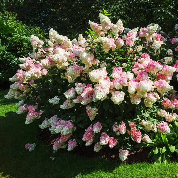 The Vanilla Strawberry Hydrangea is the hardiest of all the garden hydrangeas, and it blooms reliable even in zones 3 and 4. Why struggle to grow mopheads, when you can grow a beauty like this? It grows well in full sun or light partial shade, and in the hottest zones some afternoon shade is beneficial. It is also not particular about soil, and it grows well in ordinary garden soil, if it is not very dry, or constantly wet. It grows well in urban gardens too, and this reliable plant is very low-maintenance. It has no pests or diseases, and it needs just a simple pruning in early spring, when the new buds begin to swell. Remove any broken or dead stems, and thin, weak ones, leaving a framework of stronger branches. You can train this plant to one or two main stems, or you can keep it as a multi-stem bush. Once you have cleaned out the plant, trim back the remaining branches to just above a pair of healthy buds. You can control the size of the flower heads by how much you trim. If you take off just a few inches, you will get many flower heads, but they will be smaller. If you trim back about one-half of the length you will get fewer heads, but larger ones. You can also cut back to leave just a few inches of the stems that grew last year, and that will give you the biggest flower heads, but not so many of them. You can decide what you want, and prune to achieve that.