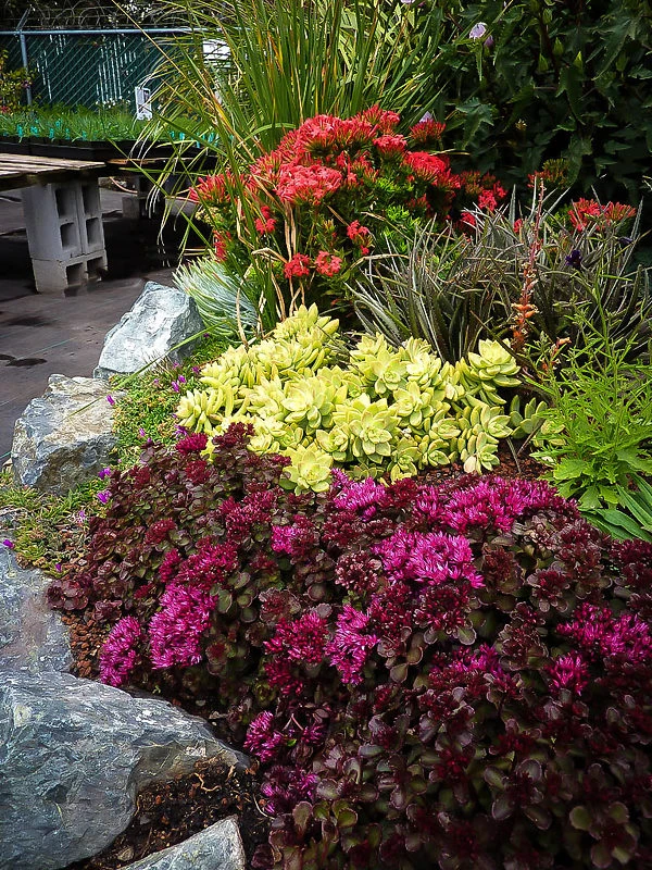 If you have dry spots in the garden with sand or gravel, or areas of rocks, then the Voodoo Sedum will thrive there, where other plants will not. Often we have untidy corners, perhaps with construction rubble and other eye-sores. Because it spreads sideways, this plant will quickly cover these spots and turn them into something beautiful. The edge of paths or drives is often full of the gravel and crushed rock used as a base under the path – this is exactly where the Voodoo Sedum is happy.