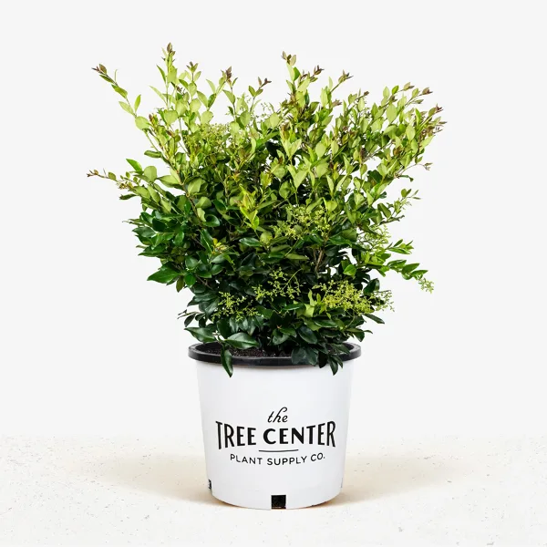 The Waxleaf Privet is a handsome evergreen shrub with rich-green glossy leaves and a profuse display of large clusters of pure-white flowers in spring. It grows no more than 9 feet tall and it can be grown in a variety of shapes. Left bushy, it makes a perfect low-maintenance background shrub for your garden, always looking fresh every day of the year. It can easily be planted as a hedge, which can be left unclipped as a natural privacy screen, or clipped into a tight formal hedge if you wish.