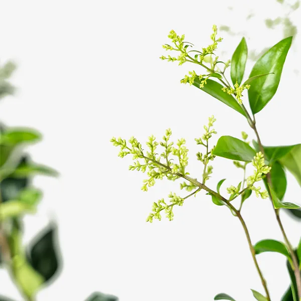The Waxleaf Privet is an improved form of the Japanese privet, a type of privet that remains smaller, and does not spread through seeds as other less-desirable kinds do. It has smooth, oval leaves that are 2 to 4 inches long and up to 2 inches wide. They have a rich, glossy surface and are a very dark green color, making the perfect background plant. The dark leaves really show off the pure white flowers that come in spring.